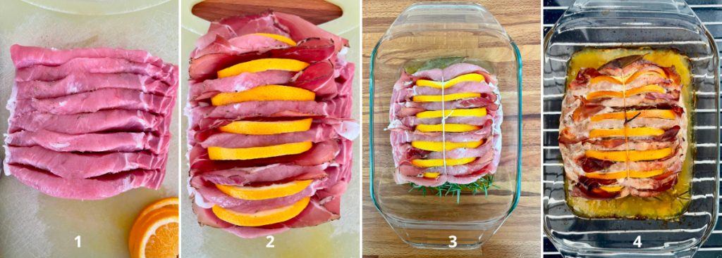 La préparation est vraiment à la portée de tous : on pratique des incisions dans la viande, où l’on insère des tranches d’orange et de speck qui, pendant la cuisson, libèrent parfum et saveur, rendant la viande tendre et savoureuse. Le rôti cuit ensuite confortablement au four, dégageant un arôme délicieux qui emplit la cuisine d’une atmosphère de Noël.