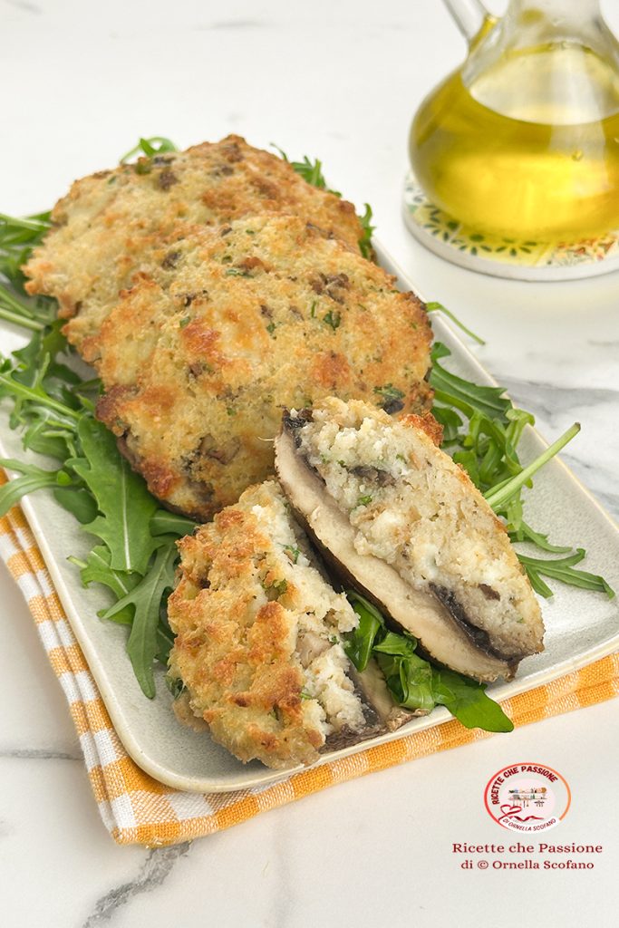 Champignons portobello farcis à la friteuse à air avec mozzarella, ou en alternative au four traditionnel, faciles, rapides et très bons, en 15 minutes ils sont déjà sur la table. J’adore les champignons et chaque fois que j’en trouve de bons, je ne les laisse pas passer. Cette fois, j’ai ramené chez moi quelques champignons portobello, ils ressemblent aux champignons de Paris crème, mais ils sont beaucoup plus grands, charnus, parfaits pour être farcis. Les préparer est très simple, je n’avais aucune idée avec quoi les farcir, puis j’ai pensé au pain rassis, pourquoi ne pas utiliser ça et pour enrichir j’ai ajouté à part des herbes de la mozzarella, et je dois avouer que le choix a été parfait, ils étaient délicieux, j’en ai mangé un bien gros, et je vous avoue que j’aurais volontiers pris une deuxième, si ce n’était pour la ligne… et oui j’avais décidé de manger peu, sain et léger, donc pour moi juste un bon gros champignon farci, mais je les referai bientôt, ils sont trop bons.
