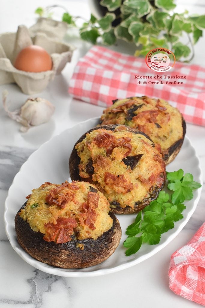 Champignons portobello farcis au salami, cuits rapidement dans une friteuse à air, une entrée ou un plat principal savoureux et facile à préparer. J’ai découvert les champignons portobello récemment, mais je suis tombée amoureuse d’eux, ce sont de gros champignons avec un grand chapeau, parfait pour être farci, donc à chaque fois que je les ramène à la maison, j’invente quelque chose pour les farcir rapidement et les cuire tout aussi rapidement dans une friteuse à air, en effet, ils sont prêts en seulement 10 minutes de cuisson. Pour les farcir, je commence par une base de pain rassis, on en trouve toujours quelques tranches à la maison, et je pétris avec des œufs, du fromage râpé, et j’utilise aussi la tige des champignons, ce que je trouve, je l’émince et je le fais sauter à la poêle avec de l’ail et de l’huile, vous n’imaginez pas le goût que cela donne à toute la farce, et puis la touche finale, la spianata ou schiacciata, ou sopressata calabraise, une charcuterie au goût agréable et délicieuse comme peu d’autres, sinon vous pouvez utiliser le salami que vous trouvez, oui je sais que tous les salamis ne sont pas aussi bons cuits que celui calabrais, mais on peut trouver une bonne charcuterie locale que vous aimez utiliser.