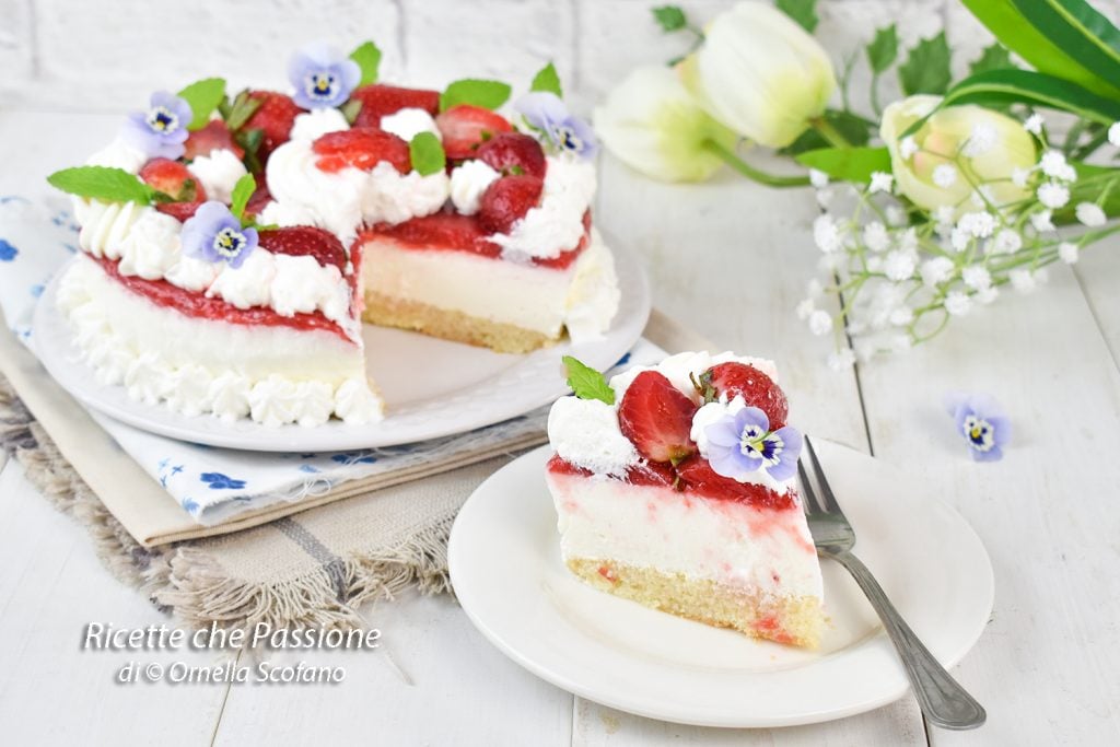 Cheesecake à la fraise avec une base de yaourt, le dessert frais parfait pour les journées plus chaudes, un cheesecake rapide et crémeux à couvrir avec un nappage toujours différent selon la saison et les envies, excellent en effet seul, avec des fruits frais dessus, ou avec un gelée de fraises ou d’autres fruits, ou pour les plus gourmands avec un nappage ou une mousse au chocolat. Préparez un cheesecake différent selon les goûts est un jeu d’enfant, mais aujourd’hui nous le préparons avec un glaçage de gelée de fraises, vraiment très simple à réaliser, et aussi léger, malgré c’est un dessert, la seule partie grasse est donnée par la crème, mais j’ai choisi celle végétale à fouetter, déjà sucrée, qui ne contient pas de cholestérol, et a la moitié des calories de celle fraîche, 170 pour 100 g contre les 340 de celle fraîche. Essayez aussi le gâteau rapide à la crème et fraises, très rapide.
