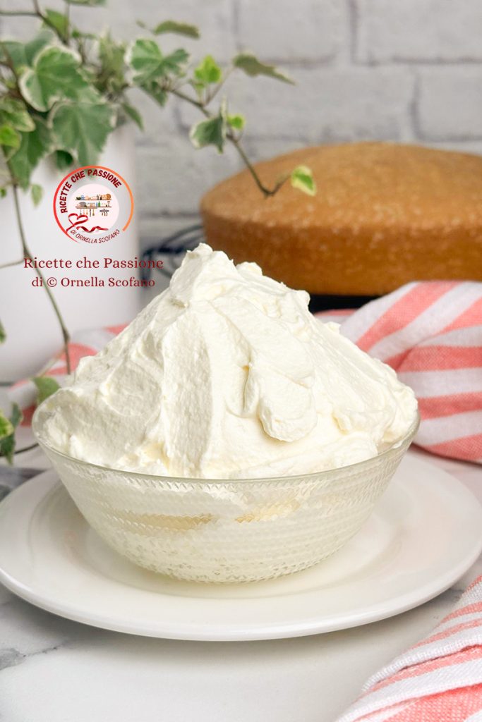 Crème gourmande au mascarpone avec ajout de chantilly, en remplaçant les blancs d’œufs par la chantilly, pour rendre notre crème au mascarpone encore plus gourmande, et certainement plus stable, dans le cas où on a habituellement des difficultés à préparer une crème suffisamment ferme et non liquide qui coule. La chantilly peut également être le remède à utiliser si notre crème au mascarpone est un peu liquide, peut-être parce que nous avons oublié de monter séparément les blancs d’œufs si nous les avons utilisés dans notre crème. J’ai utilisé cette délicieuse crème pour préparer le zuccotto tiramisu de Noël, que dire, une véritable délice pour les yeux et le palais, une bonté crémeuse pour tous les sens, prépare-la aussi peut-être pour un simple tiramisu ou pour accompagner une bonne tranche de panettone ou de pandoro à Noël. Excellente aussi pour garnir des gâteaux en couches, elle tient parfaitement.