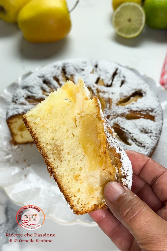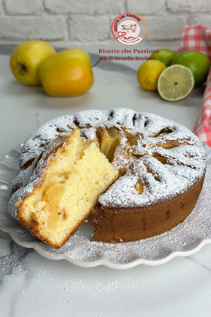 Gâteau aux pommes et citron vert moelleux et délicieux jusqu’à la dernière tranche, excellent à déguster au petit déjeuner mais parfait aussi comme dessert en fin de repas, ainsi que pour le goûter, c’est un gâteau moelleux et humide, très agréable, que tu apprécies à tout moment de la journée. En alternative au citron vert, tu peux aussi utiliser le citron, j’ai choisi le citron vert parce que j’ai un arbre dans le jardin et contrairement au citron, il est déjà prêt à être récolté, alors j’ai voulu essayer d’en faire des desserts, que je vais te montrer, y compris ce délicieux gâteau moelleux et garni de pommes. La pâte du gâteau se prépare facilement sans beurre, œufs, sucre farine, un peu d’huile de graines ou d’olive, et jus de citron vert dilué avec un peu d’eau. La particularité du gâteau n’est pas tant dans la pâte mais dans les pommes, qui sont coupées en tranches, et mises dans le gâteau non pas à plat mais de biais, de sorte qu’elles s’enfoncent dans le gâteau, ainsi chaque tranche sera riche en pommes, ce qui permet de préparer un gâteau très agréable, humide et moelleux en même temps, une douce bonté qui fond dans la bouche. Voyons comment le préparer.