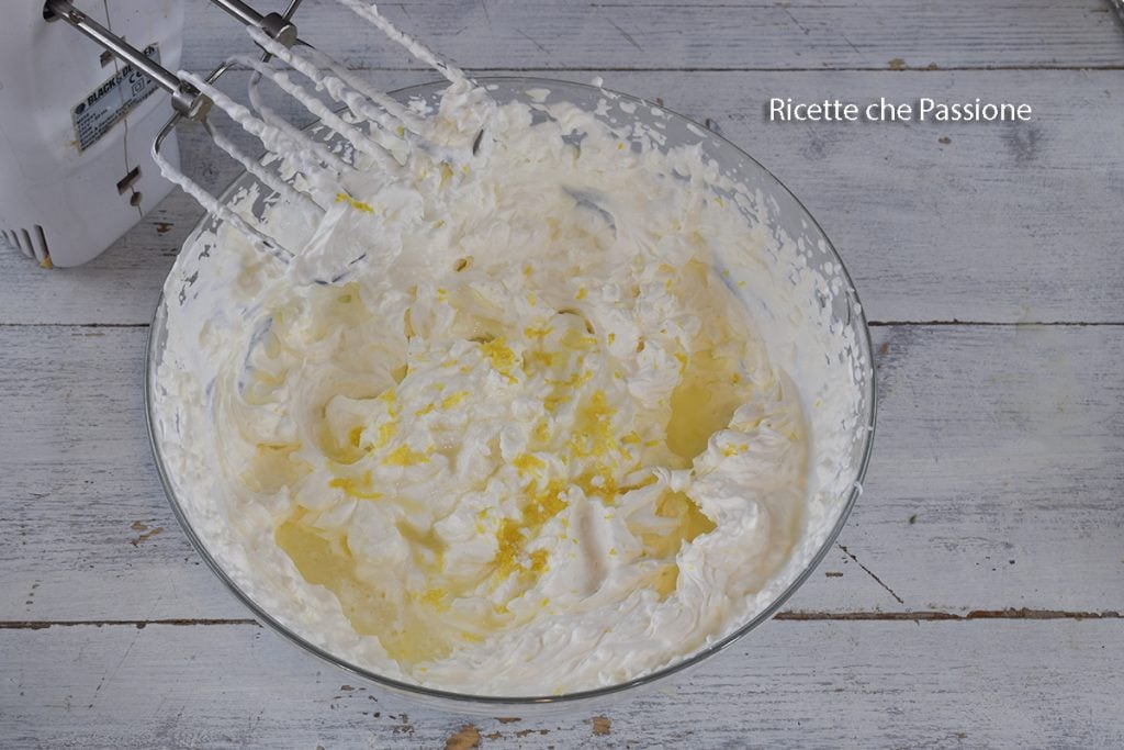 3. Ajoutez maintenant le zeste râpé d’un demi-citron, ou entier, et un peu de jus de citron, ajustez à votre goût, mais je vous conseille de ne pas exagérer, parce que nous avons le gelée au citron qui a un goût vraiment intense, cela équilibre un peu.