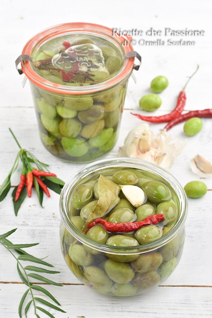 Olives en saumure, une délicieuse conserve maison à préparer en automne, période de la récolte des olives. La conservation en saumure est une méthode facile pour conserver les olives, qu’elles soient vertes ou noires. Pour la préparation de cette conserve spéciale, on utilise uniquement de l’eau, du sel et des arômes. De nombreuses préparations prévoient l’utilisation de soude caustique, mais comme elle est également dangereuse à manipuler, nous évitons de l’utiliser et nous nous fions à la méthode traditionnelle de grand-mère pour adoucir les olives, simplement en les trempant pendant environ vingt jours, en changeant l’eau, au moins 2 fois par jour, avant de procéder à la mise en saumure qui permet de conserver ces délicieuses olives pendant plus de 2 ans, savoureuses et bien fermes, essayez, elles ne deviennent pas molles. Les olives en saumure sont parfaites pour préparer des apéritifs alléchants ou pour un riche buffet d’entrées, en effet elles ne manquent jamais dans l’antipasto rustique calabrais, mais elles sont également délicieuses à utiliser dans la préparation de nos plats préférés, en effet de nombreux plats célèbres de la cuisine méditerranéenne ont comme ingrédient les olives en saumure, qu’elles soient vertes ou noires, comme ma délicieuse caponata de légumes variés.