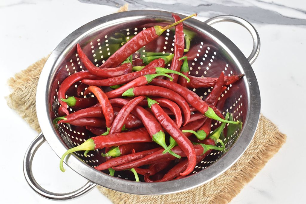 1. Lavez et séchez les piments. Enlevez la tige, et coupez en morceaux avec des ciseaux s’ils sont longs, ou gros, s’ils sont petits vous pouvez aussi les laisser entiers.