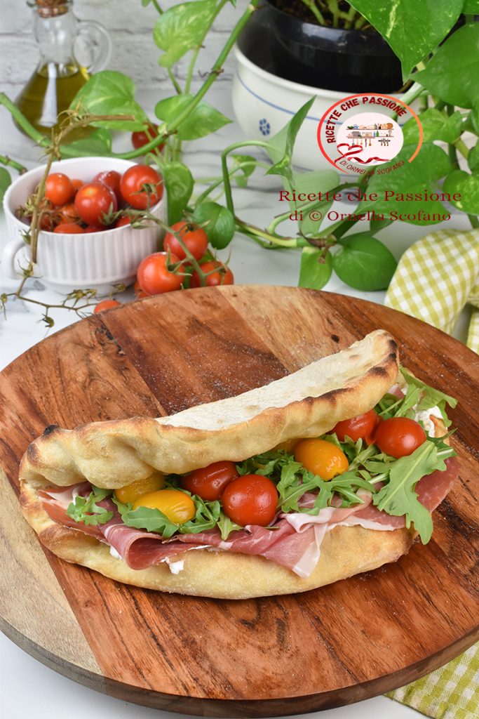 Pizza baciata, une simple pizza cuite sans garniture pliée en deux, avec l’astuce de l’huile pour ne pas la faire coller et fermer. Une fois sortie du four, elle est ouverte et garnie à cru, les ingrédients pour la garnir peuvent être divers et variés, à choisir selon vos goûts. J’ai choisi comme garniture la stracciatella comme fromage, sa crémeux et son goût se marient bien avec les charcuteries que j’ai choisies pour garnir ma pizza baciata, j’ai utilisé à la fois de la mortadelle de Bologne au pistache et du jambon cru de Parme, mais au lieu des charcuteries on peut aussi utiliser des légumes grillés, ou encore plus savoureux frits. Préparer la pizza baciata est très facile mais comme tous les levains, cela demande les bonnes attentions, pour obtenir des levains moelleux et en même temps croustillants, légers et digestes, il est très important de partir d’une bonne pâte, et de faire une bonne levée, la cuisson fait aussi la différence, c’est pourquoi j’ai voulu utiliser la pierre réfractaire, j’en avais acheté une pour moins de 10 euros et je ne l’avais pas encore essayée, et je dois dire que le résultat a été exceptionnel. Comme pâte, j’ai réalisé une simple pâte à pizza, travaillée presque entièrement dans un bol avec une cuillère, ainsi avec un minimum d’effort, j’ai obtenu un résultat magnifique, je vous explique mieux tout dans la recette. Lisez ici ma critique du four Indesit que j’ai utilisé pour la cuisson.