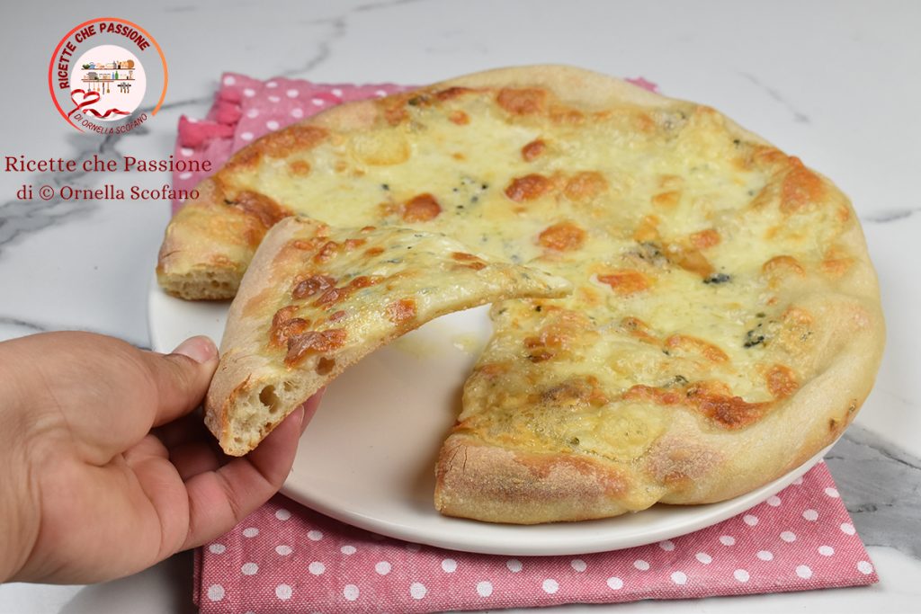 Nous sortons du four et dégustons notre bonne pizza, chaude et filante, excellente aux 4 fromages rouges ou avec la garniture que vous préférez, moi naturellement, j’ai utilisé ma saveur préférée, chaque fois que je sors la pizza du four, au moins une doit être aux 4 fromages, peu importe si elle est blanche ou rouge.