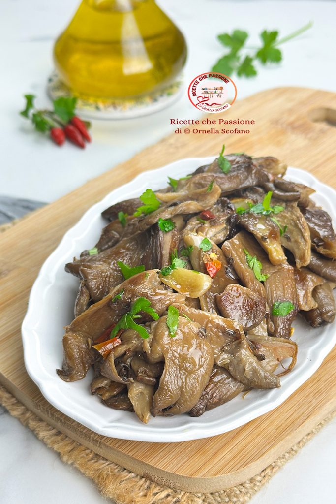 Pleurotes rapidement sautés à la poêle, excellents en entrée, accompagnement, ou pour assaisonner un bon plat de pâtes, seuls ou avec un peu de lardons et de fromage. J’adore les champignons de toutes sortes, j’aime aller chercher dans les bois des cèpes, mais quand il n’y en a pas, j’aime les acheter quand je les trouve frais et sans aucun doute les pleurotes sont ceux que j’achète le plus souvent, ils sont faciles à nettoyer et se préparent en un rien de temps de mille façons délicieuses. Une version que j’adore pour sa simplicité est de les faire sauter à la poêle, il suffit de quelques ingrédients, comme l’ail, l’huile et le piment, et ils deviennent délicieux. Voyons comment les préparer.