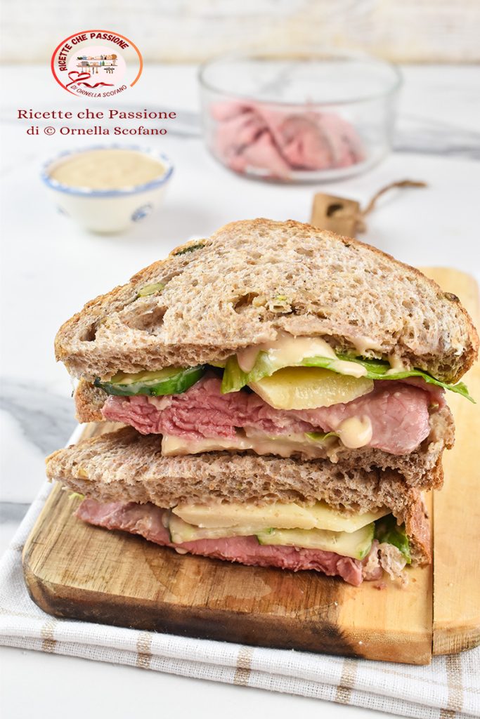 Une idée gourmande si vous avez du veau tonnato en trop, ou peut-être que vous le préparez exprès pour réaliser de délicieux sandwichs ou tramezzini farcis, parfaits pour un buffet, une occasion spéciale, mais aussi simplement à emporter au travail ou maintenant que c’est la période des vacances, peut-être aussi à la plage ou lors d’une excursion en montagne. Pour préparer le veau tonnato, j’utilise la technique à basse température, à cuisson lente, ainsi la viande reste plus savoureuse, parfumée et juteuse, parfaite pour garnir un sandwich. Avec cette méthode, il est très facile de préparer un tendre rôti de veau, on le met dans le sac, on allume le roner et il suffit d’attendre.