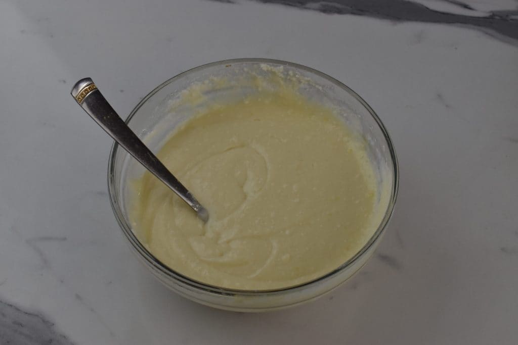 Dans un grand bol, mettez la ricotta bien égouttée. Travaillez-la bien avec une fourchette, puis ajoutez le sucre et travaillez encore, ajoutez 2 œufs et mélangez, à votre goût ajoutez du zeste de citron bio.