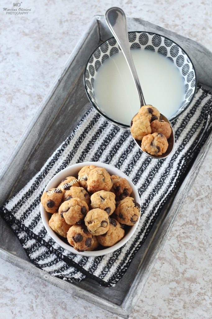 Les céréales de mini cookies sont de délicieuses petites boules de biscuits aux pépites de chocolat, parfaites à tremper dans du lait au petit-déjeuner. Pour réaliser ces céréales de mini cookies, j’ai utilisé ma recette de cookies. J’ai préparé les cookies sans lactose et formé de petites boules que j’ai cuites au four. Une fois que les céréales de mini cookies sont cuites et refroidies, vous aurez hâte de les plonger dans le lait !