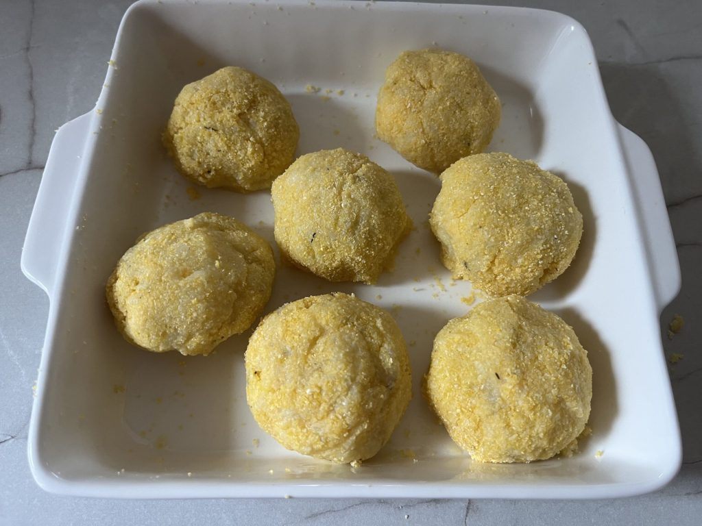 Chaque boulette de chou-fleur et pommes de terre est une bouchée de plaisir. Avec une croûte croquante, grâce à la panure dans la farine de maïs, et un cœur qui fond en bouche, on ne finirait jamais de les déguster.