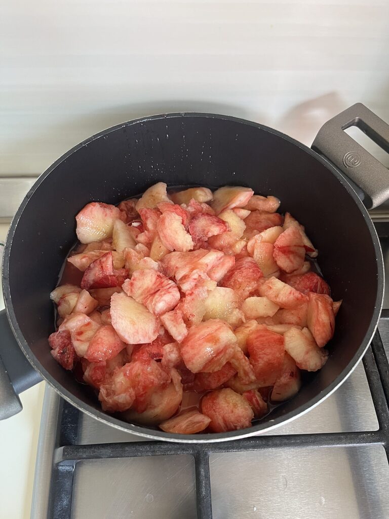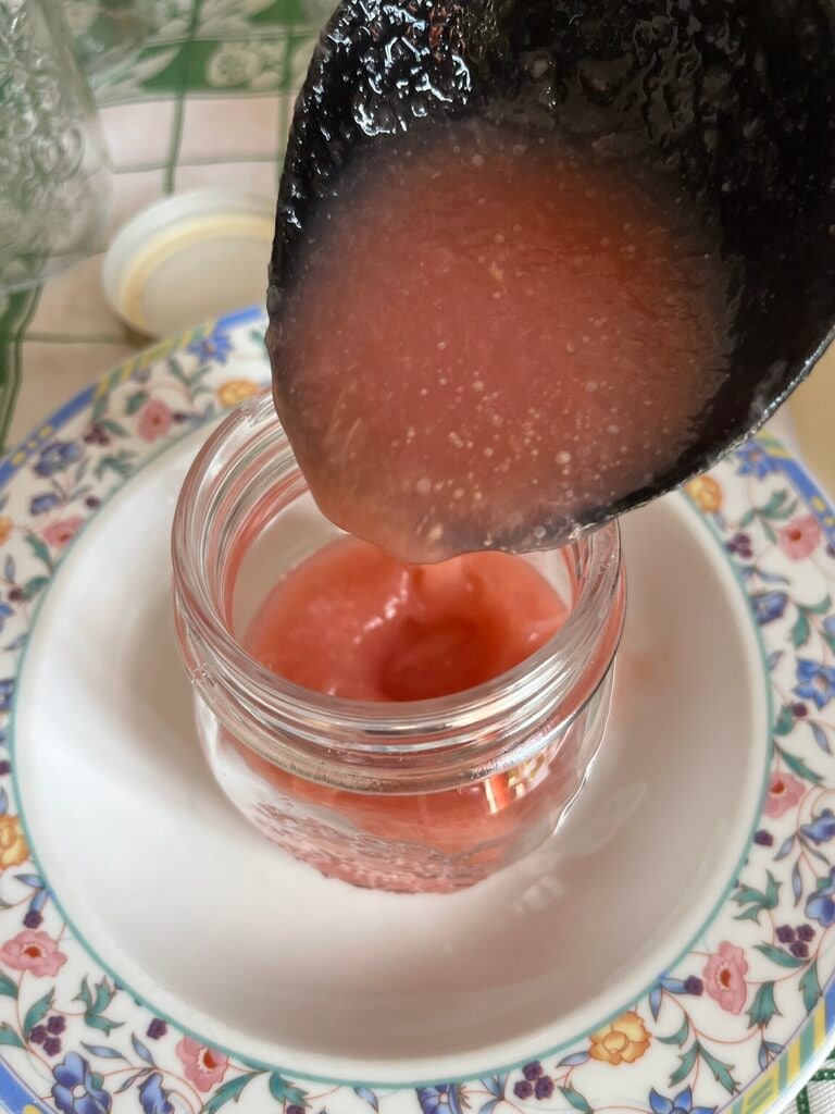 Dans ma recette, j’utilise très peu de sucre de canne intégral, juste le minimum indispensable pour enlever l’acidité du fruit.