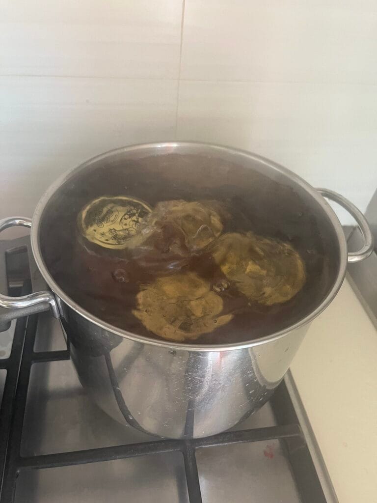 Finissons en les faisant bouillir dans une grande quantité d’eau pendant 30 minutes, toujours séparés par un torchon comme nous l’avons fait pour la stérilisation. Après ce temps, éteignons le feu et laissons-les refroidir dans leur eau.