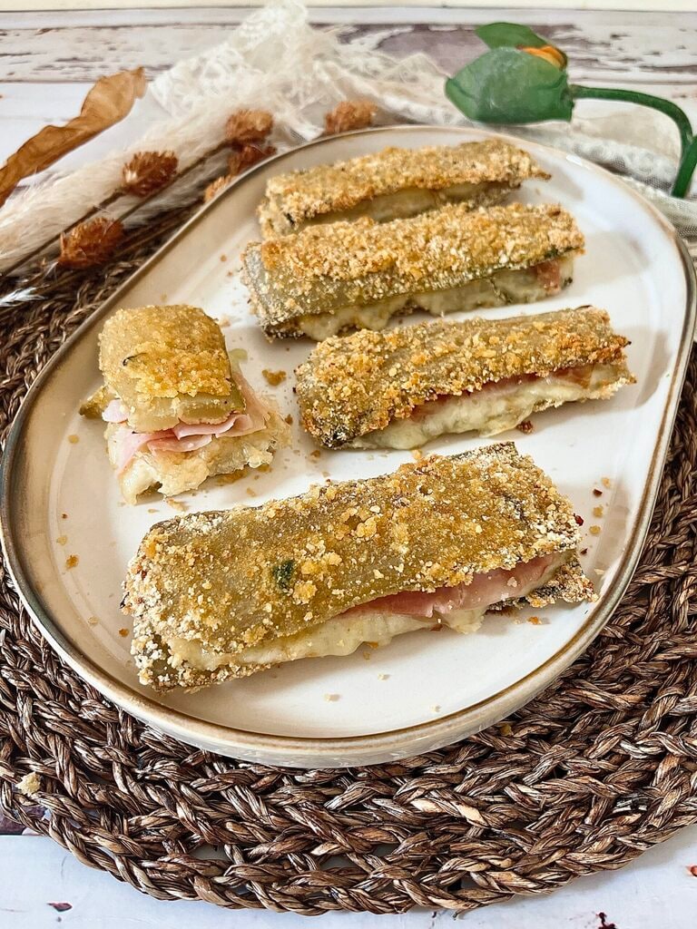 Elles sont d’abord bouillies puis panées dans l’œuf et la chapelure, et ensuite garnies de jambon et de fromage.