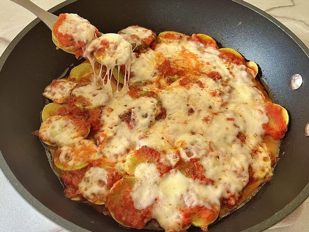 Couvrez et faites cuire, les premières minutes à feu moyen, puis à feu doux pendant environ 15-18 minutes, ou jusqu’à ce que les courgettes soient tendres mais pas défaites et que la mozzarella soit complètement fondue.