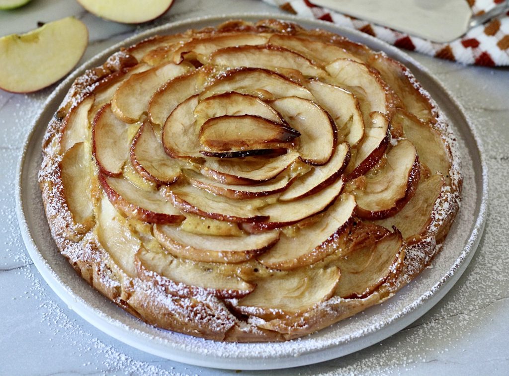 Il existe de nombreuses versions, et celle-ci est non seulement délicieuse mais aussi spectaculaire, et c’est sans doute le meilleur gâteau aux pommes que j’aie jamais mangé !