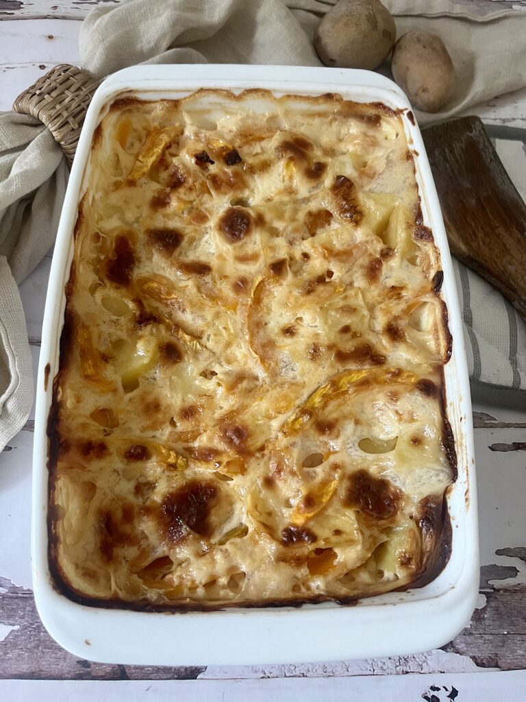 Très savoureux, fondant et riche, il est préparé avec des pommes de terre, du potiron, du fromage fondant et de la béchamel.