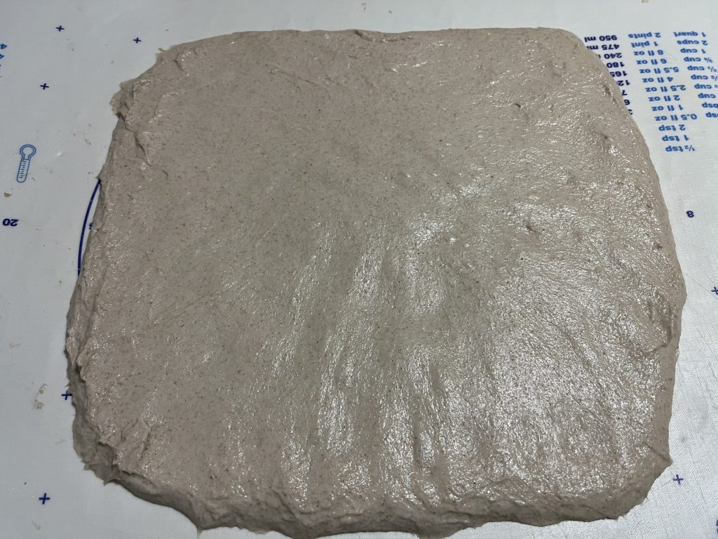 Renverse la pâte et avec les mains donne-lui une forme rectangulaire.