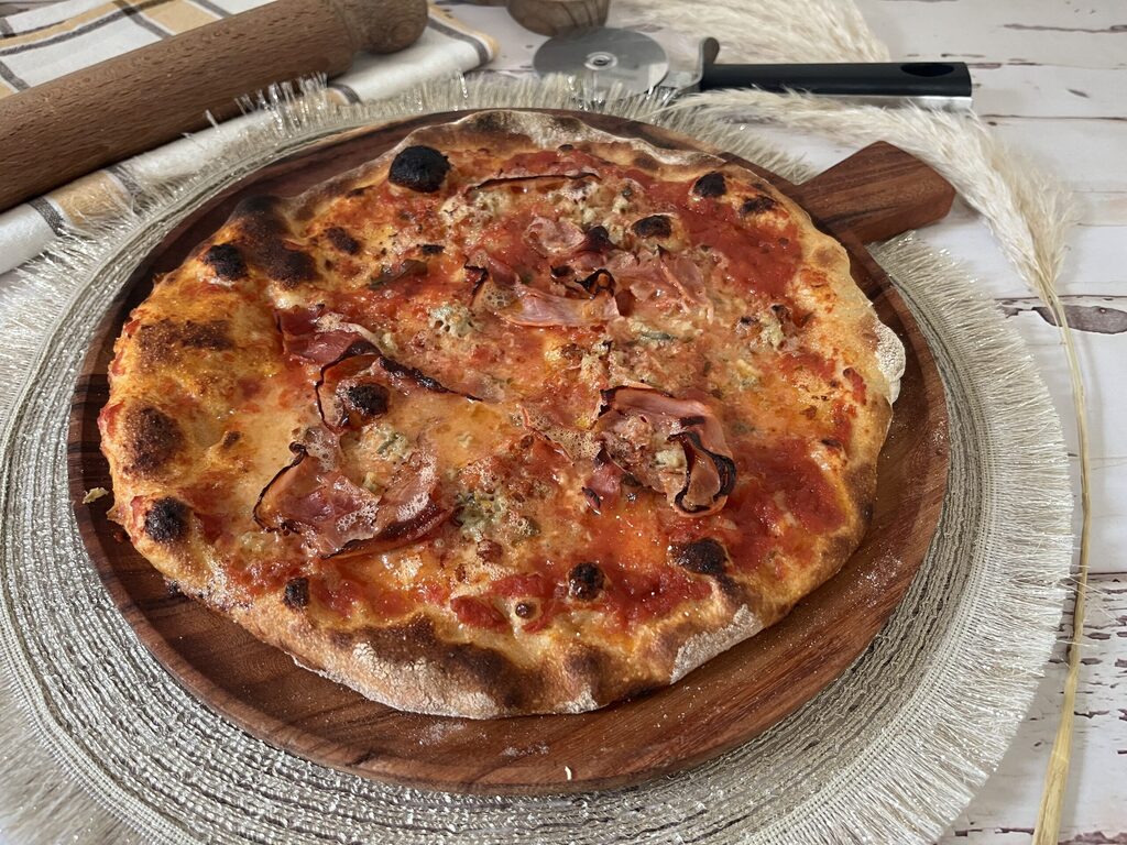 La pizza jambon cuit et gorgonzola est une pizza très appétissante et riche.