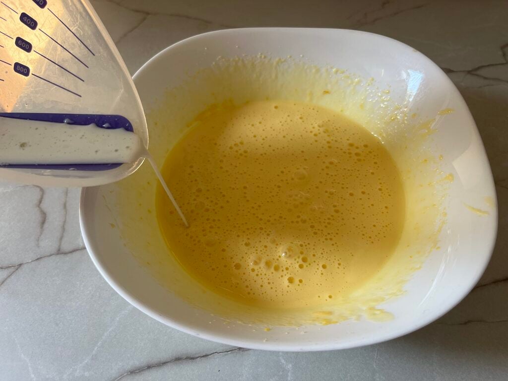 fouette avec les fouets électriques jusqu’à obtenir un mélange mousseux