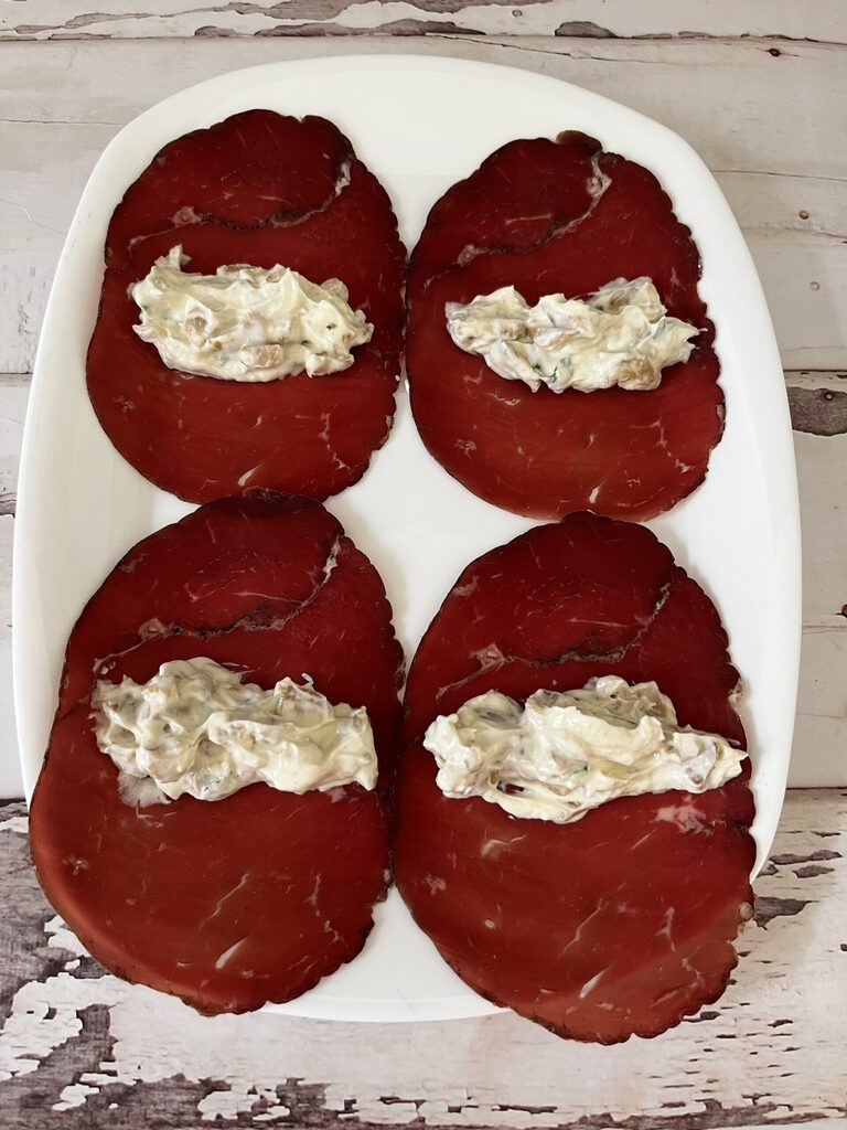 Les roulés de bresaola sont un plat frais et savoureux enrichi d’une délicieuse crème de fromage et de champignons.