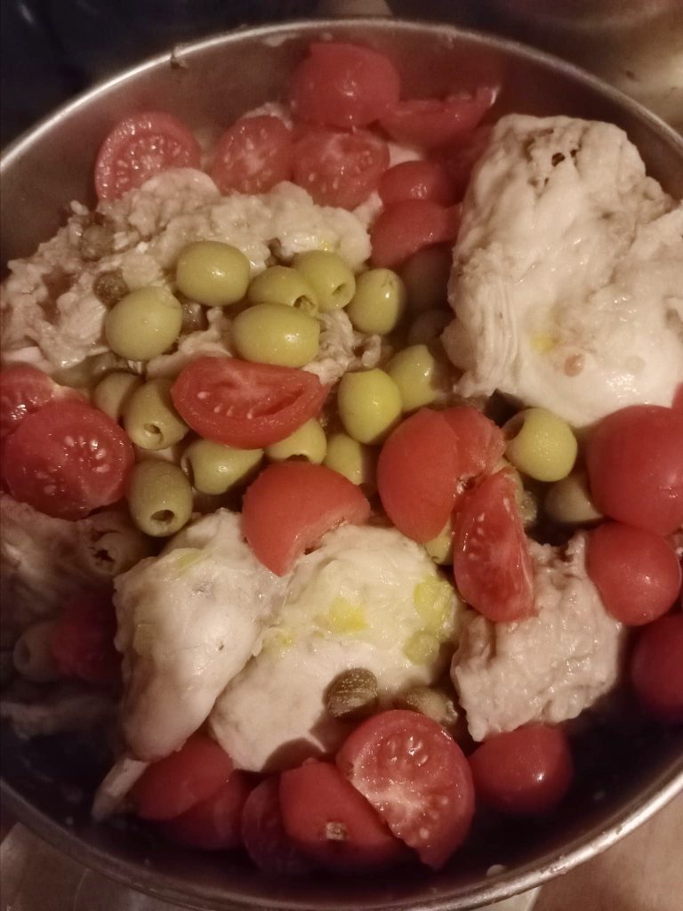 Il en existe différentes versions selon la région où il est cuisiné : j’ai voulu ajouter aussi des tomates cerises.