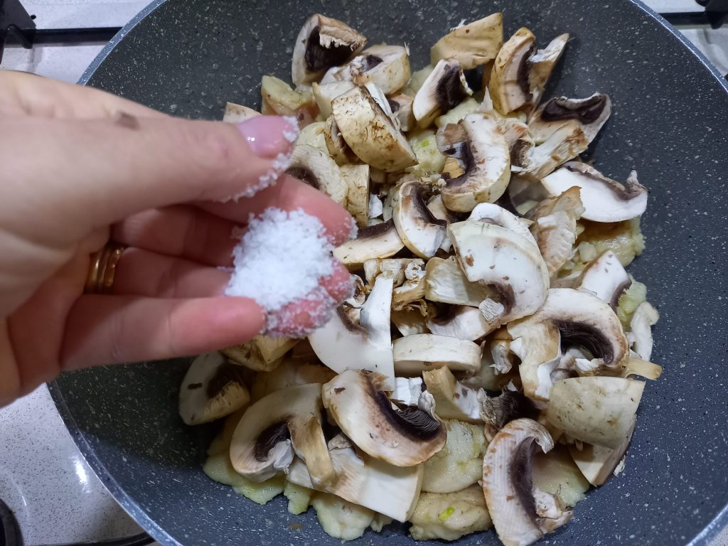 Retirez les bouchées du bol et placez-les dans un bol. Ajoutez dans le bol l’ail, les champignons, le sel et le poivre, faites cuire : 10 min./120°C/sens inverse/vitesse 1.