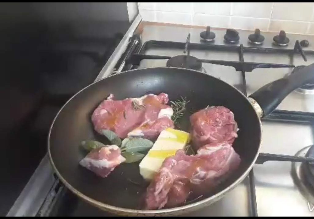 Maintenant, dans une poêle antiadhésive, mets le beurre et un filet d’huile d’olive extra vierge, ajoute la viande, et fais-la cuire 5 minutes de chaque côté avec le couvercle.