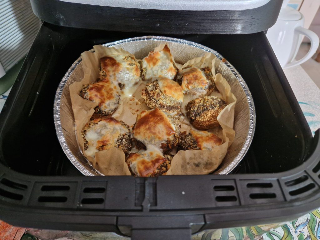Avec les mains, formez une boule de farce, remplissez le chapeau des champignons en compactant bien avec les mains.