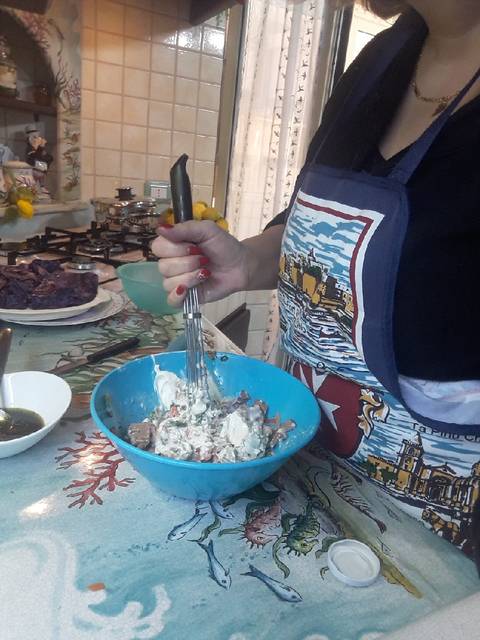 Préparons la farce en mélangeant le Philadelphia, la roquette, le thon et la macédoine.