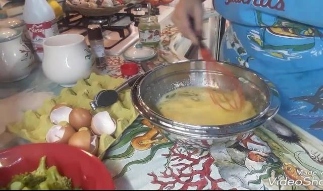 Maintenant, dans un bol, battez les œufs, et incorporez le Grana Padano, l’ail et le persil hachés, et les 2 cuillères de purée en poudre, ajustez le sel et le poivre selon vos goûts.