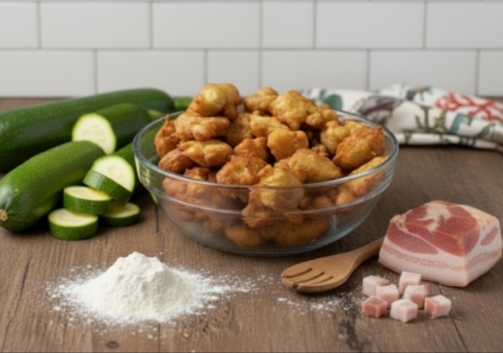 Voici prêtes les crêpes de grand-mère aux courgettes et lardons, pour un petit péché de gourmandise.