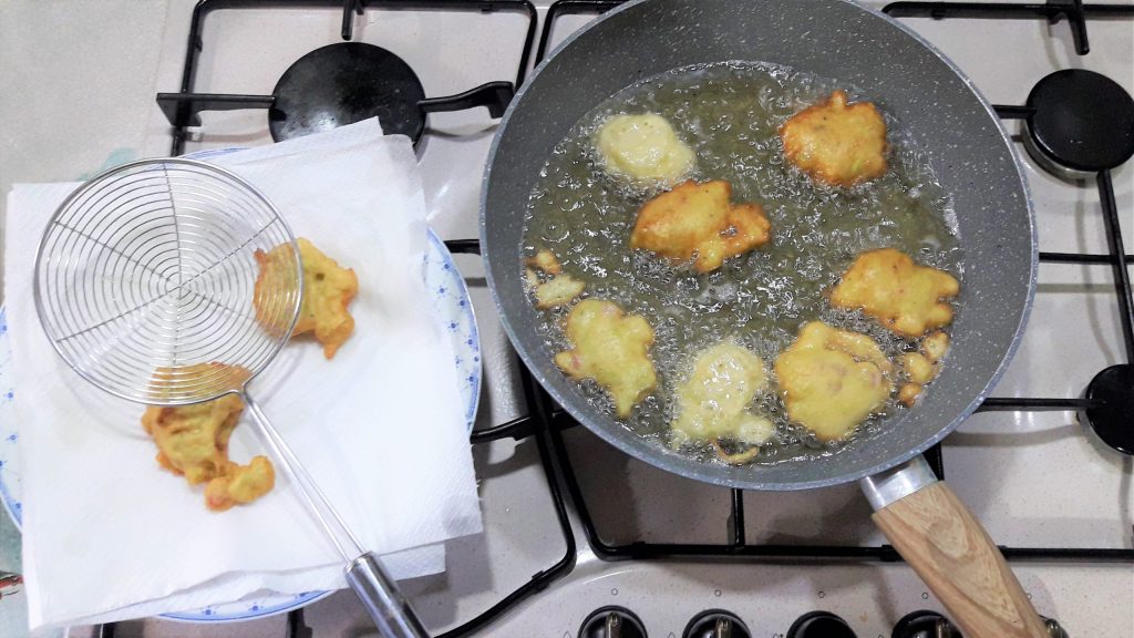 Quand l’huile aura atteint une température suffisamment élevée, versez la préparation par cuillerées, faites cuire environ 2 minutes de chaque côté puis retournez.