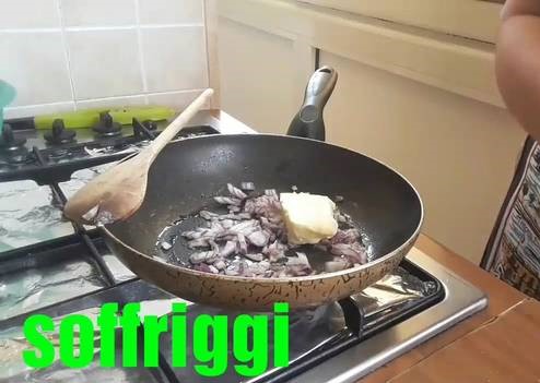 Pour commencer, mets l’eau pour les pâtes à bouillir et, en attendant, coupe grossièrement l’oignon et fais-le revenir avec du beurre et un filet d’huile d’olive extra vierge