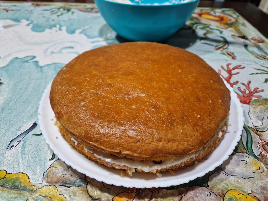 Démoulez la génoise et coupez-la en 2 couches.