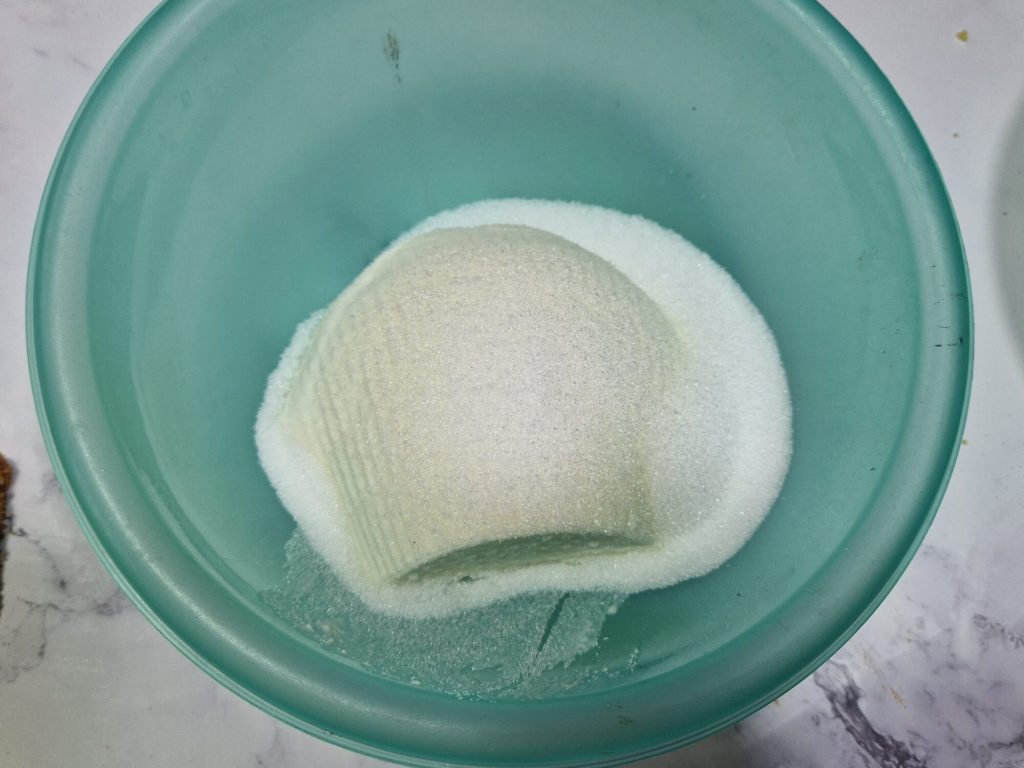 Vous pouvez réaliser l’imbibage aussi avec du simple lait, moi je l’ai voulu en mixant les fraises avec de l’eau et de l’érythritol : j’ai chauffé l’eau au micro-ondes avec le sucre ou l’érythritol. Puis une fois froide j’ai ajouté les fraises et je les ai mixées.