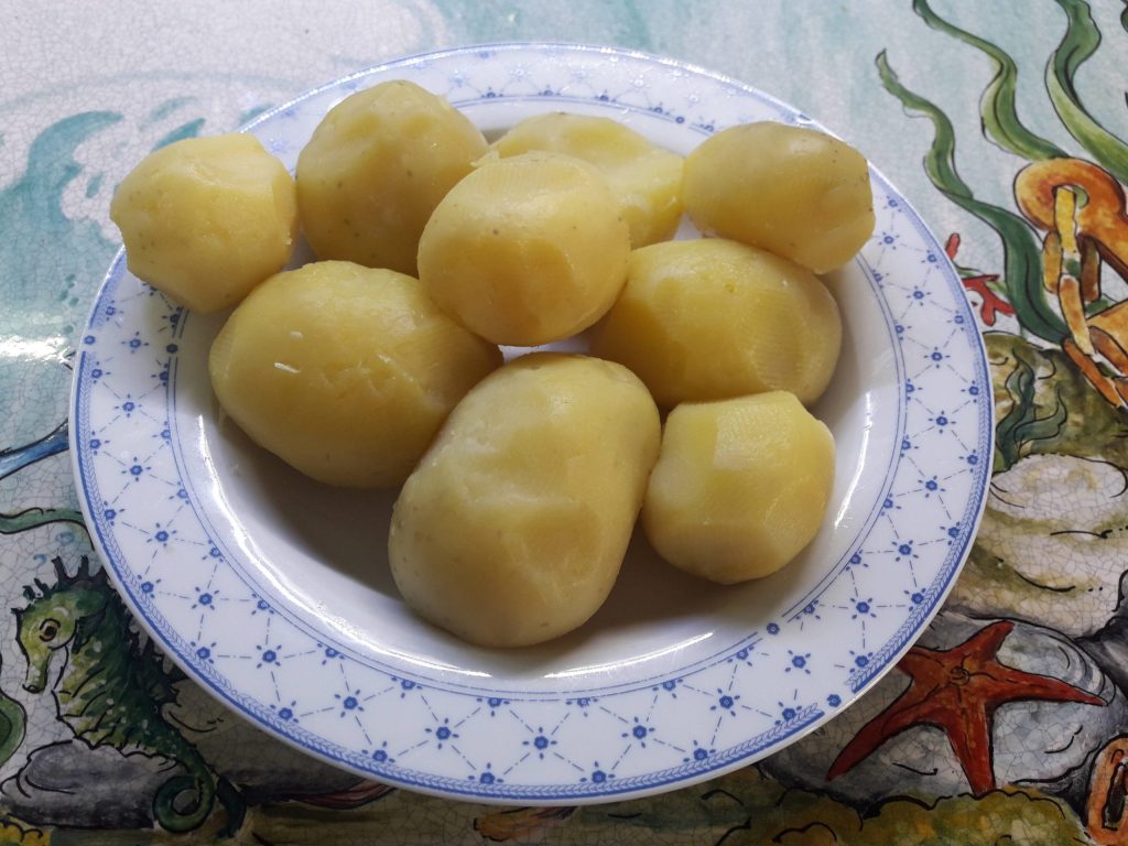 La première chose à faire est de faire bouillir les pommes de terre avec toute la peau, dans une casserole avec beaucoup d’eau salée.