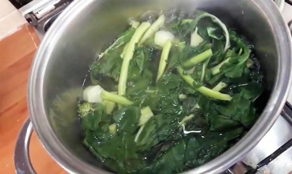 Remplissez les 2 casseroles d’eau, ajoutez du sel, et dès que ça bout, mettez dans l’une les feuilles, et…