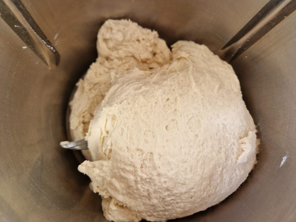 Une fois que j’ai obtenu ce composé semi-liquide, vous pouvez ajouter progressivement le reste de la farine tamisée auparavant avec le sel et continuez à pétrir