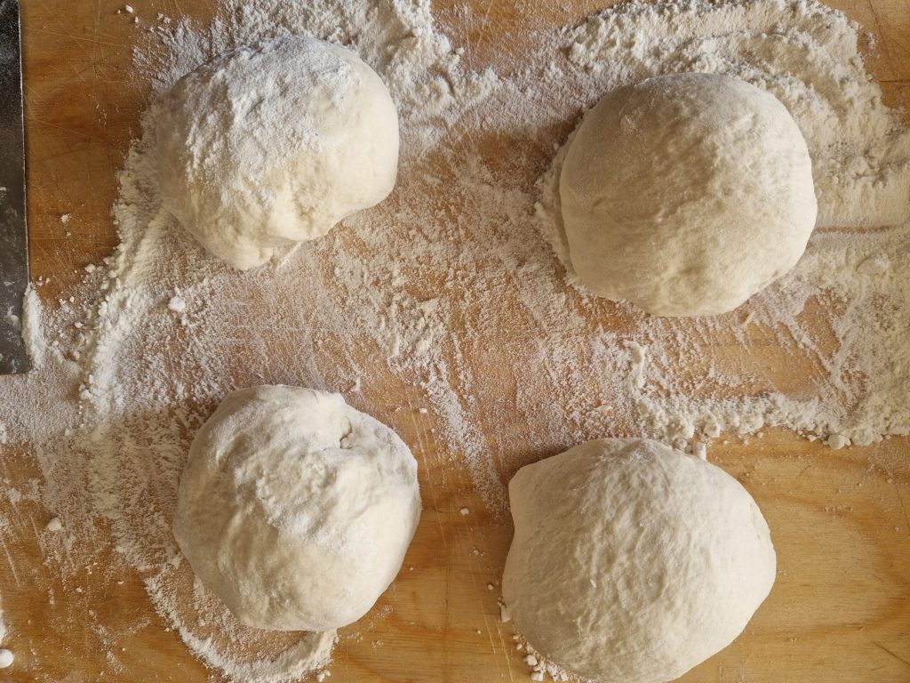 Passé le temps des plis attendez encore 15 minutes puis divisez la pâte en quatre parties