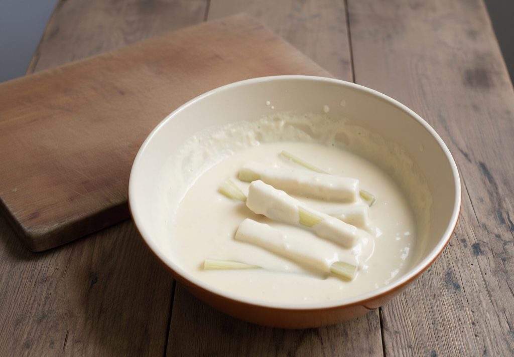 La recette originale de la pâte à frire indique qu’elle doit être préparée avec de l’eau, de la farine et de la levure de bière. Elle doit être bien épaisse et sans grumeaux.