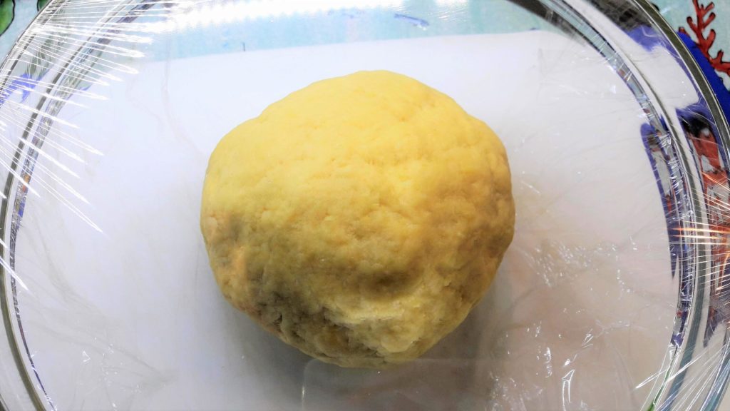 Formez une boule, enveloppez-la dans du film alimentaire et laissez reposer 20 minutes à température ambiante.