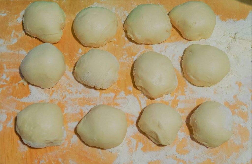 • Ensuite, formez 12 boules bien arrondies, et placez-les sur les plaques avec du papier cuisson en dessous, et laissez lever encore 2 heures.