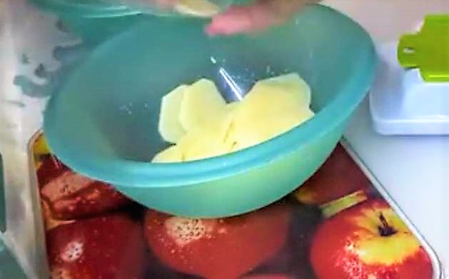 • Les pommes de terre doivent également être très fines, ajoutez-y de l’huile, du sel, du poivre, de la sauge et du romarin