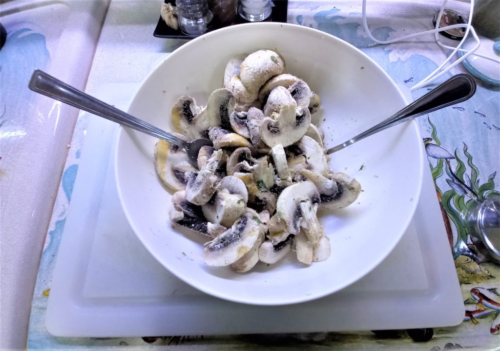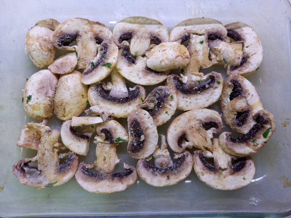 Dans un moule antiadhésif, faites une première couche de champignons,