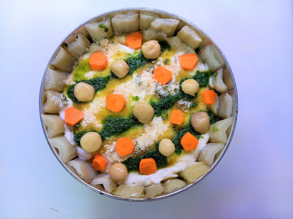 • Enfin, décorez à votre goût avec des rondelles de carotte, des petits champignons et le pesto de basilic ou de persil.