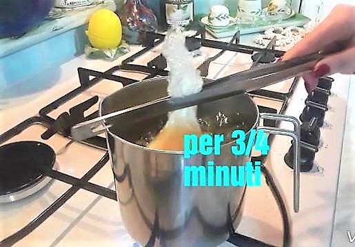 Plongez l’enveloppe en la tenant avec la pince longue dans une petite casserole avec de l’eau bouillante pendant environ 3 ou 4 minutes.