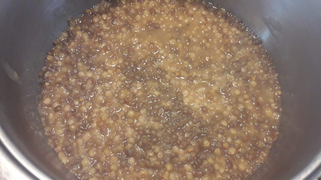 J’ai ajouté environ 300 ml d’eau dans la casserole et j’ai porté les lentilles à ébullition.