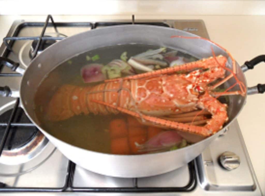 Cette opération doit être faite avec une langouste vivante. Si vous utilisez de la langouste congelée, vous pouvez l’immerger directement à froid.